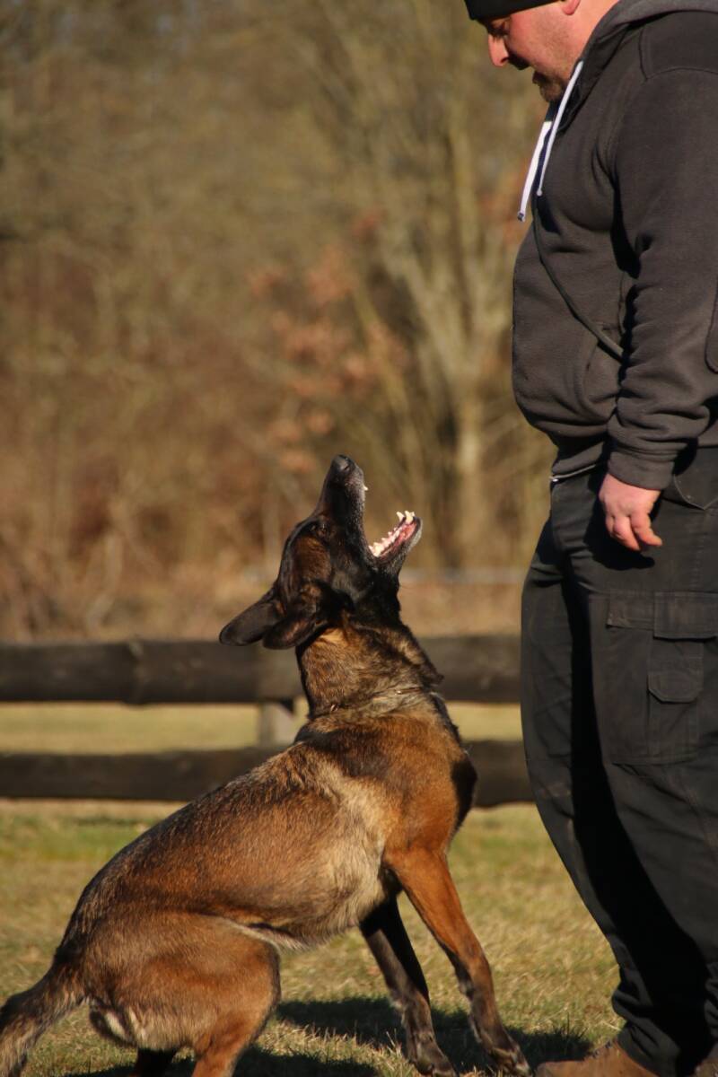 Beim Schutzdienst sieht der Hund den Schutzärmel als Beute an. Hier lernt er Gehorsam in Extremsituationen . Heute wird der Hund überwiegend über Motivation und Spiel ohne wesentlichen Druck ausgebildet. Der Hund im Sport lernt nicht einen Menschen zu beißen, er erbeutet hier vielmehr den Schutzärmel, den er als seine Beute ansieht.